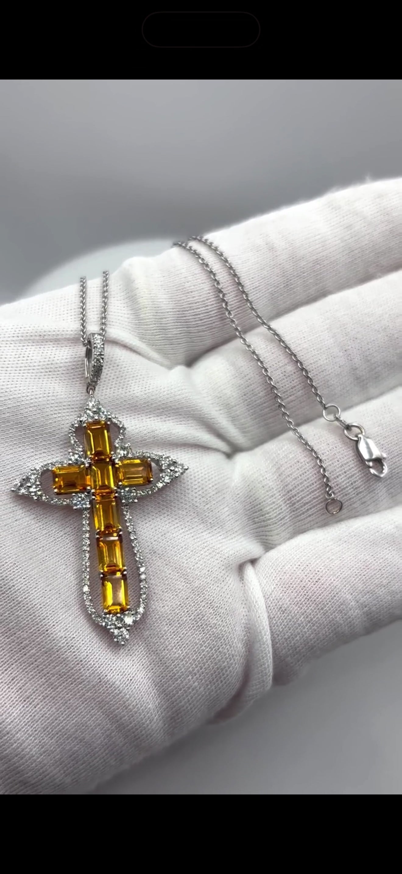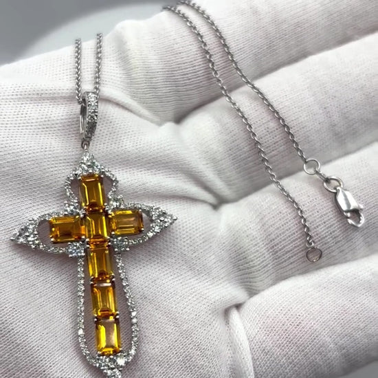 Designed to be worn as a meaningful statement or layered with everyday favorites, this diamond citrine cross necklace is an heirloom-quality piece crafted for collectors of fine jewelry.